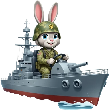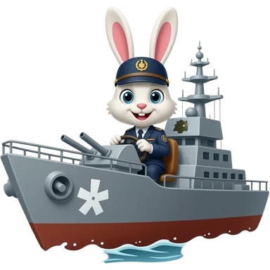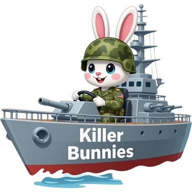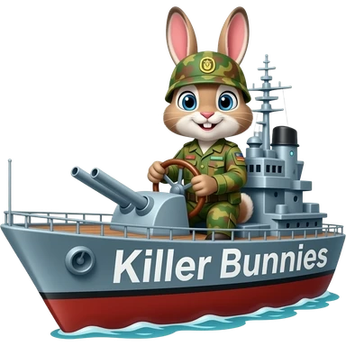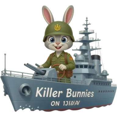 bunny in navy fatigues driving a war ship text Killer Bunnies on bow emoji