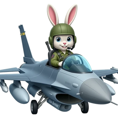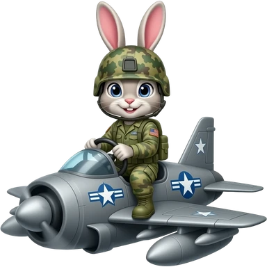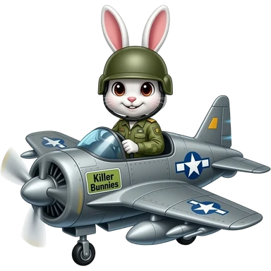 bunny in army fatigues driving a fighterplane text Killer Bunnies on bumper emoji
