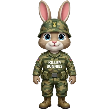 bunny in army fatigues saluting text Killer Bunnies on helmet emoji