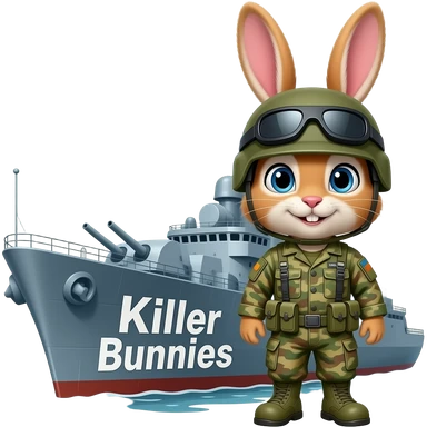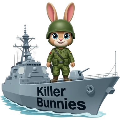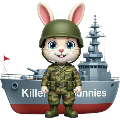 bunny in army fatigues in a war ship text Killer Bunnies on bow emoji