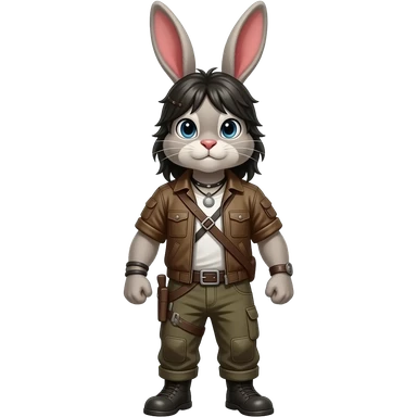 two identical friends with the emoji style. No smile lines, make the bunnies kawaii and the shirt black. Both have matching bunny shirts and have PIN STRAIGHT HAIR One has super long dark brown hair that goes to waist, one has long hair that is also dark brown. They both have Indian skin emoji