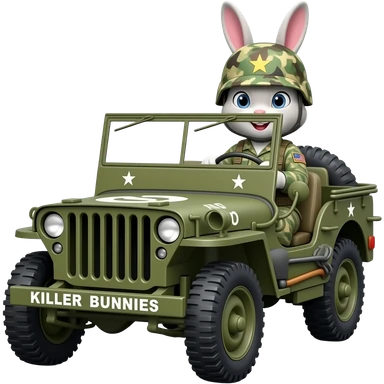 bunny in army fatigues driving a jeep text Killer Bunnies on bumper emoji