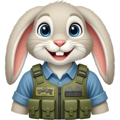 bunny in army fatigues driving a war ship text Killer Bunnies on bow emoji