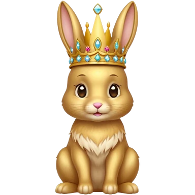 bunny King – proud golden bunny wearing a tall jeweled crown, sitting emoji | AI Emoji Generator