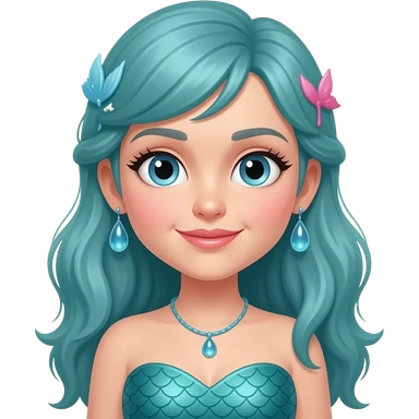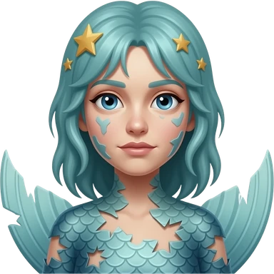 Adult mermaid with blonde wavy hair, light skin, with a dolphin emoji