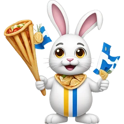 Bunny rabbit wearing Greek flag and holding gyros pita wrap emoji