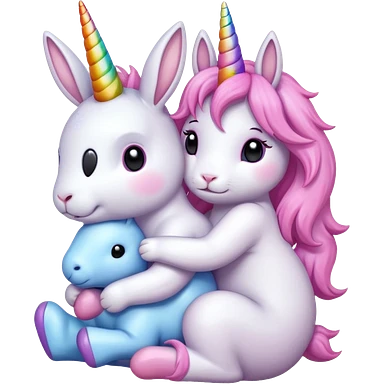unicorn with bunny ears cat nose, horse tail, dog eyes emoji