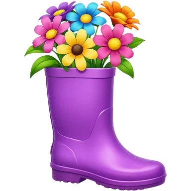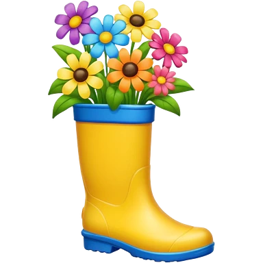Realistic blue rain boots with wild flowers growing out of the boots emoji
