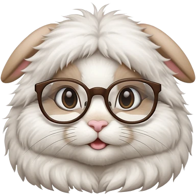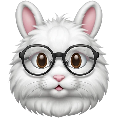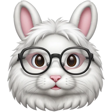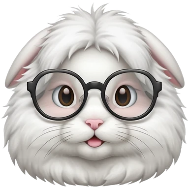 super fluffy white bunny with glasses wearing a crown emoji