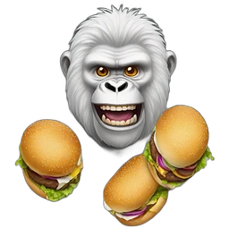 Burger on a plate with fries. The burger is smiling and drooling- looks euphoric and delicious. emoji