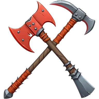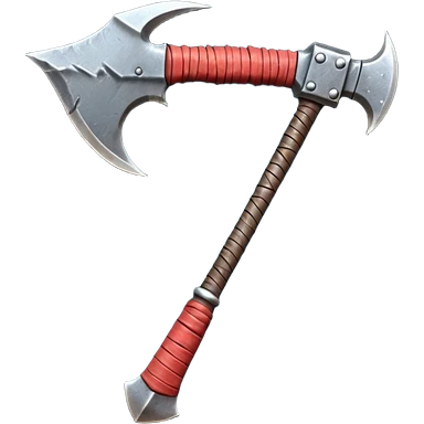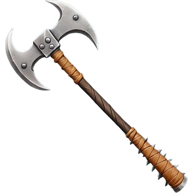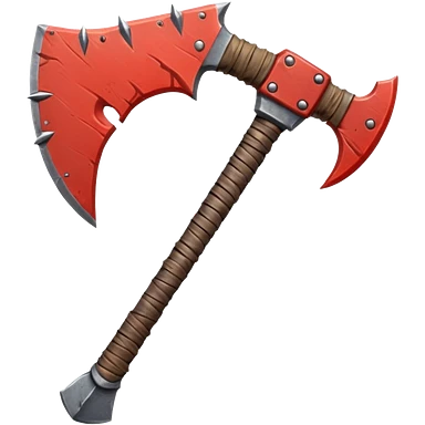 savage barbarian axe object icon, spiked double blade, battle-worn metal, scratches, heavy fantasy weapon, 3D cartoon, mobile game icon style, centered, clean background, no text, no watermark emoji