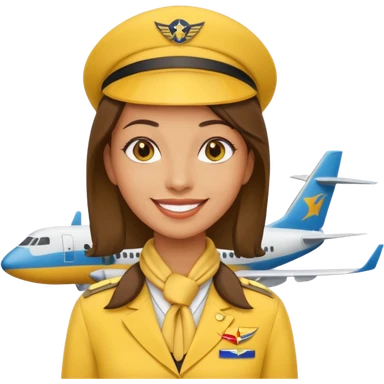 stewardess and airplane behind the stewardess yellow emoji