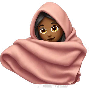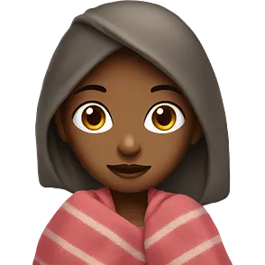 Burgundy girl with a blanket emoji | AI Emoji Generator