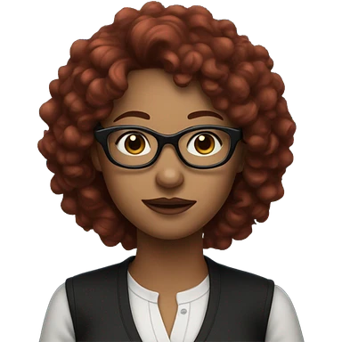 woman with glasses, blue eyes, curly burgundy hair, hair length to the soulders, dressed all black emoji