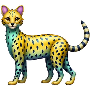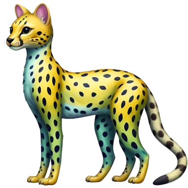 Colorful shiny Leopard-Caracal-Cheetah-Serval-Civet-Trico-Sergal-Vernid-fusion-hybrid-animal-creature, dull body emoji