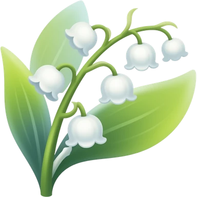 Elegant lily of the valley flower with delicate white bell-shaped blooms hanging from green stem and bright green leaves emoji