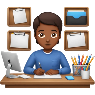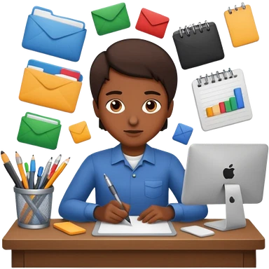 3D clay character relaxed with laptop and coffee, floating icons (envelope, heart, dollar), colofrful outfit, floating icons, white laptop, Pixar style, transparent background emoji