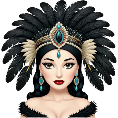 burlesque cabaret dancer, glamorous costume, feathered headdress, confident pose emoji