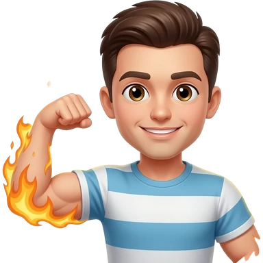 Vibrant fire wizard penguin with black-and-white feathers and glowing fiery-orange eyes. Wearing crimson-and-gold robes with flaming runes and tall wizard hat with burning embers. Holding ornate staff with blazing crystal orb. Swirling orange flames and embers emanate from its body emoji