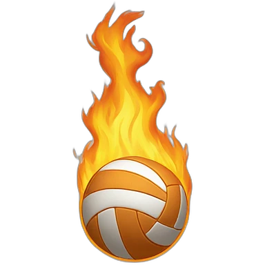 A volleyball resting on the orange sand of a beach, with a volleyball net in the background. The scene includes a beautiful beach landscape with blue sea, sky, and palm trees, while a couple of women in swimsuits play in the distance, capturing the relaxed yet competitive vibe of beach volleyball. emoji