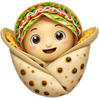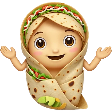 A burrito with arms and really cute eyes emoji