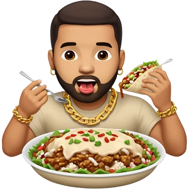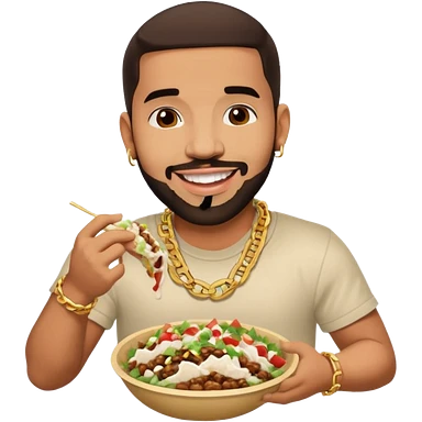 Drake wearing a chain eating a chipotle burrito bowl emoji