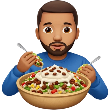 Chipotle, steak burrito, bowl with lettuce, cheese, sour cream, and white rice  emoji