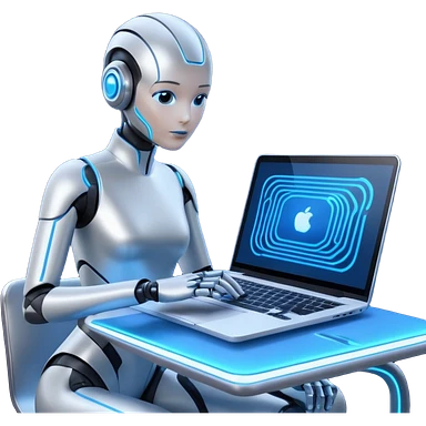 AI Agent looking at the laptop and scan a flow of content on the screen emoji