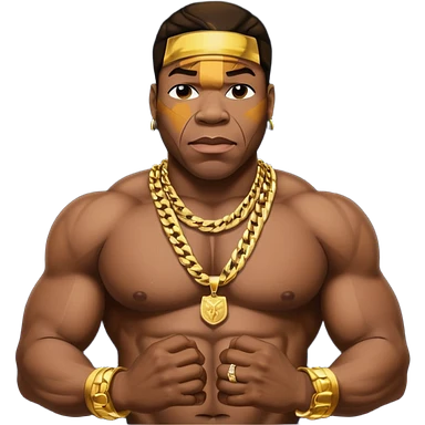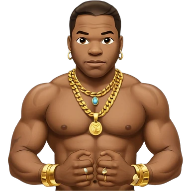 Busta Rhymes shirtless with necklaces emoji