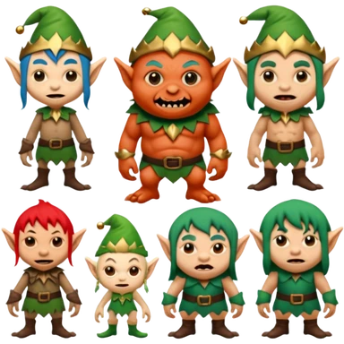 a group of Midget. Troll. Elf. Hideous. Disaster. Monster. emoji