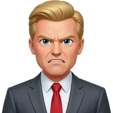 business man golden hair, blue eyes little older man angry face red tie emoji