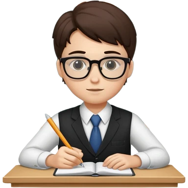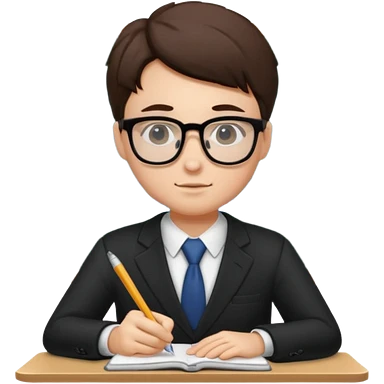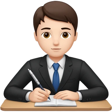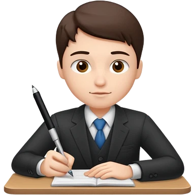 worker at a desk inside an office building, wearing business attire, with a computer and simple office details like coffee or papers emoji