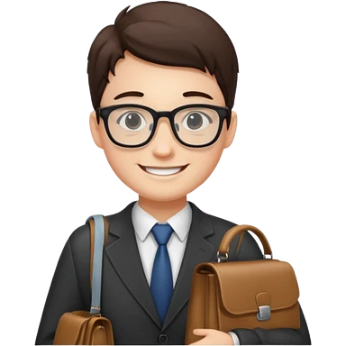 A gray apartment building in the hand of a smiling man in a business suit emoji