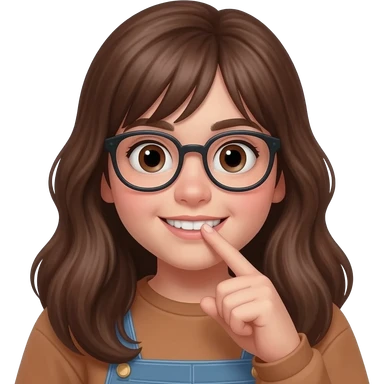 Crée moi l’emoji d’une fille brune Avec de long cheveux et qui a 15 ansau gros yeux et des lunettes qui met son index dans sa bouche avec ses dent emoji