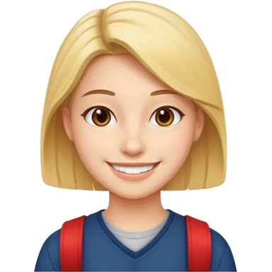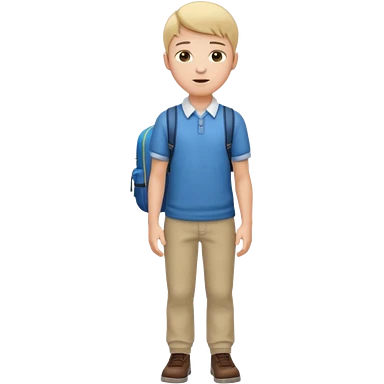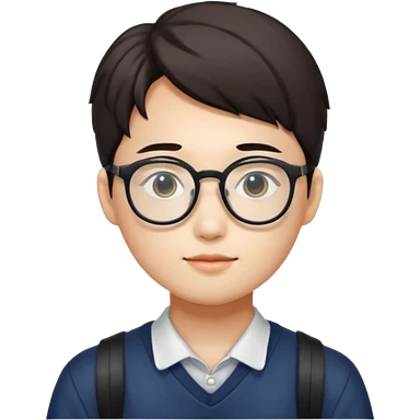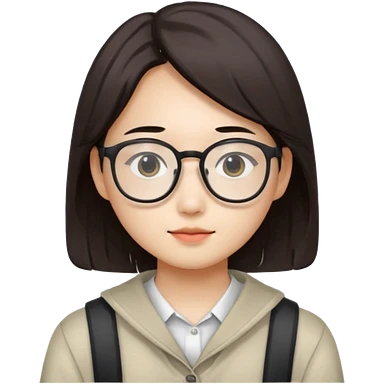 college student with annoyed face , black hair , with navy varsity jacket( initial I) and backpack , girl, long hair, emoji