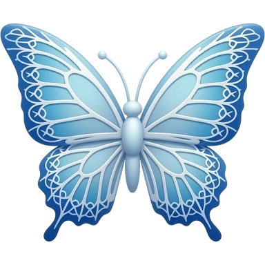 3D emoji gothic butterfly, light blue soft, subtle blue gradient white filigree, subtle gradient blue lace trim,, elegant emoji
