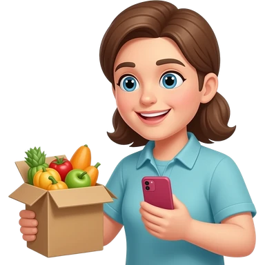 smartphone with buy button and delivery box, e-commerce, high fidelity, smooth edges, emoji style emoji