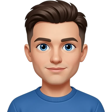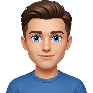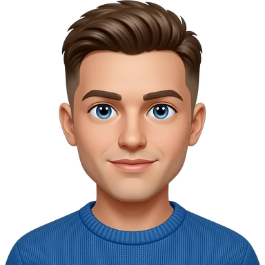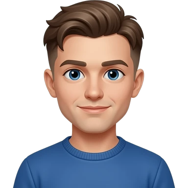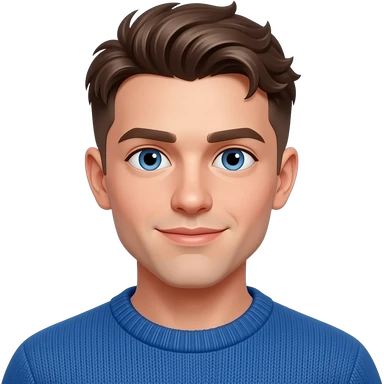 BW - young man, blue eyes, early 20s, light brown skin fade floppy short on top hair, blue jumper emoji