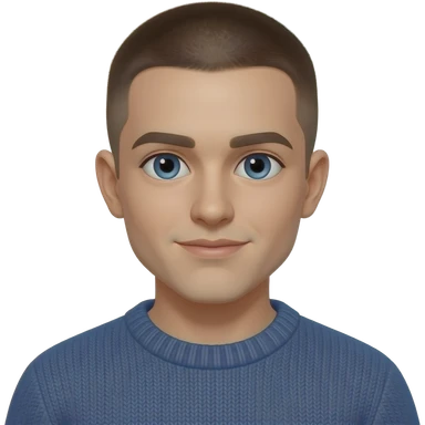 BW - young man, blue eyes, early 20s, light brown skin fade very short on top hair, blue jumper emoji