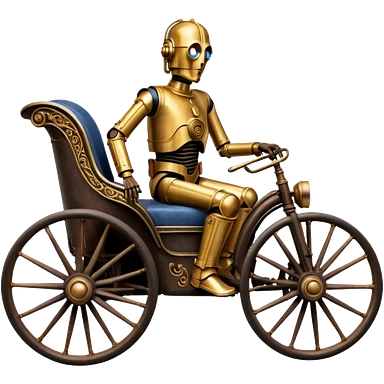 Old rust American West tarnished C-3PO policeman in 1864 delicately ornate rosegold accents painted buggy powered by electric motors and batteries with safety features and belts emoji
