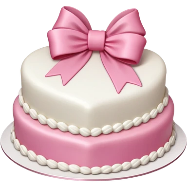 Heart shaped birthday cake with a huge pink bow and white vintage frosting emoji