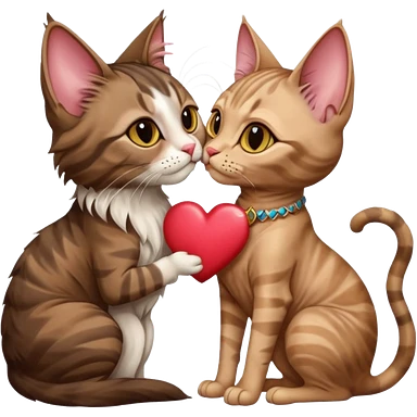 A Maine coon and a sphinx cat of different colours kissing with one love heart in front emoji