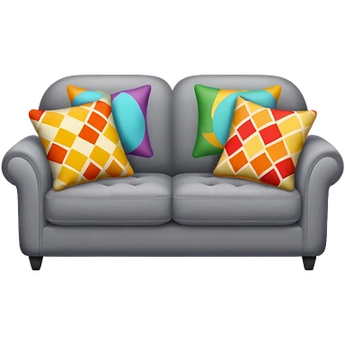 A grey couch with 2 colorful pillows on it emoji