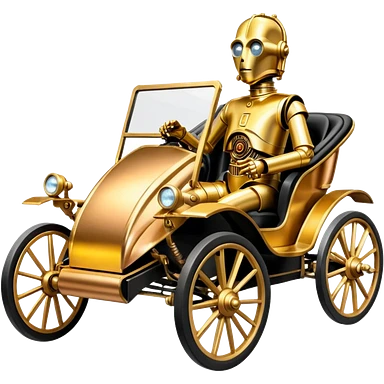 C-3PO in 1865 rose-gold painted buggy powered by electric motors and batteries emoji