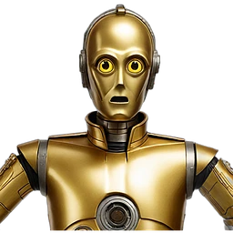 c3Po wearing Satan’s leather biker outfit with hat walking emoji