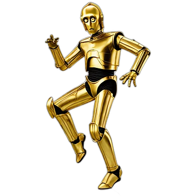 c3Po wearing Satan’s leather biker outfit with hat walking emoji