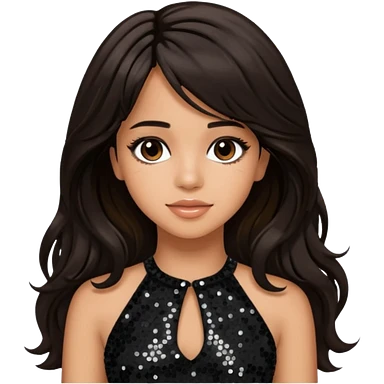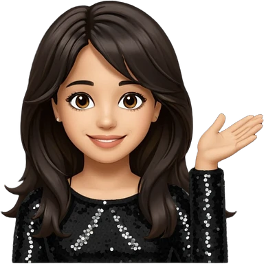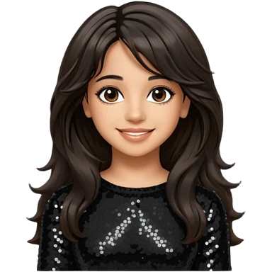 Camila Cabello from Fifth Harmony with long dark brown hair, black sequin outfit emoji