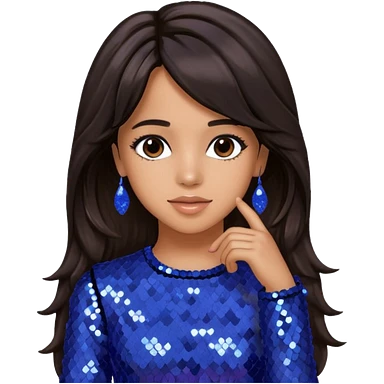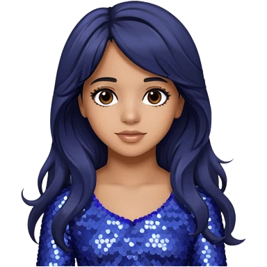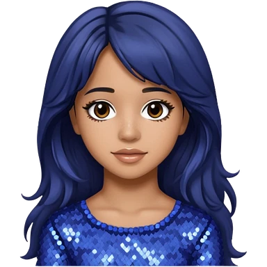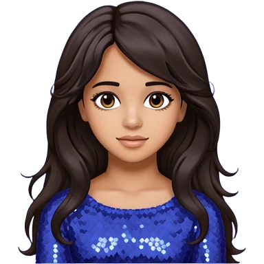 Camila Cabello from Fifth Harmony with long dark brown hair, periwinkle sequin outfit emoji