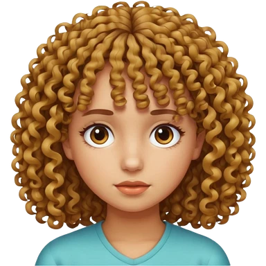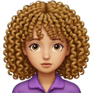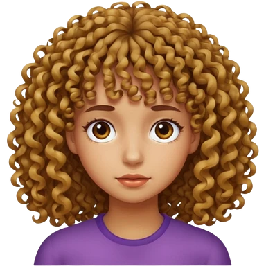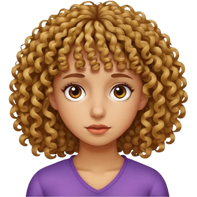 Fais un emoji d une fille avec les cheveux bouclés et une frange bouclés tordu mal faite la fille doit etre un peu mate de peau emoji