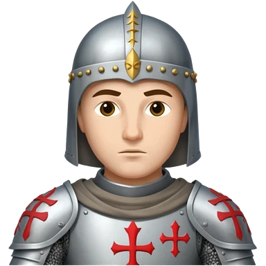 knight templar in medieval armor, white mantle with red cross, helmet, shield emoji